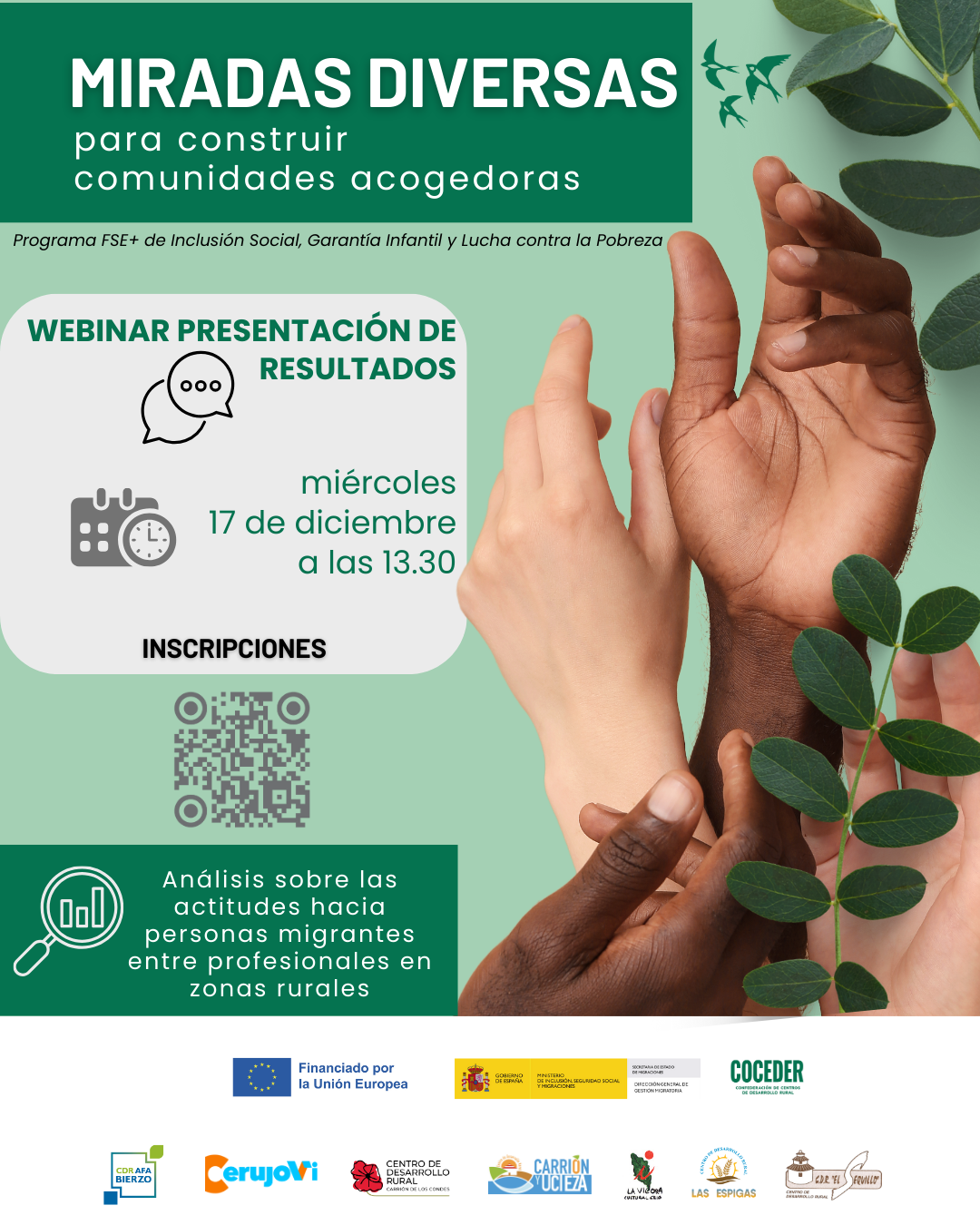 COCEDER presenta el miércoles 17 de diciembre de 2025 a las 13:30 los resultados del análisis sobre las actitudes hacia personas migrantes entre profesionales en zonas rurales, en un webinar para el que ya están abiertas las inscripciones aquí: Presentación análisis resultados