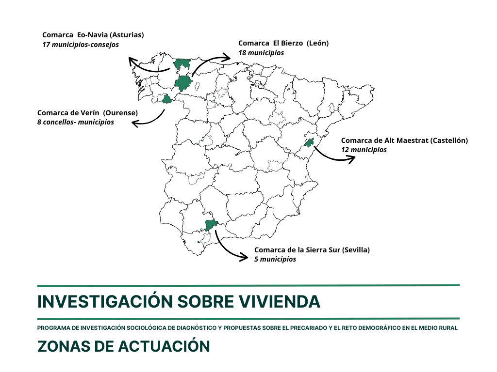 El análisis se desarrolló en cinco comarcas donde actúan los Centros de Desarrollo Rural asociados: Fundación EDES, Portas Abertas, AFA Bierzo, Alt Maestrat y de Sastipem Thaj Mestapem.