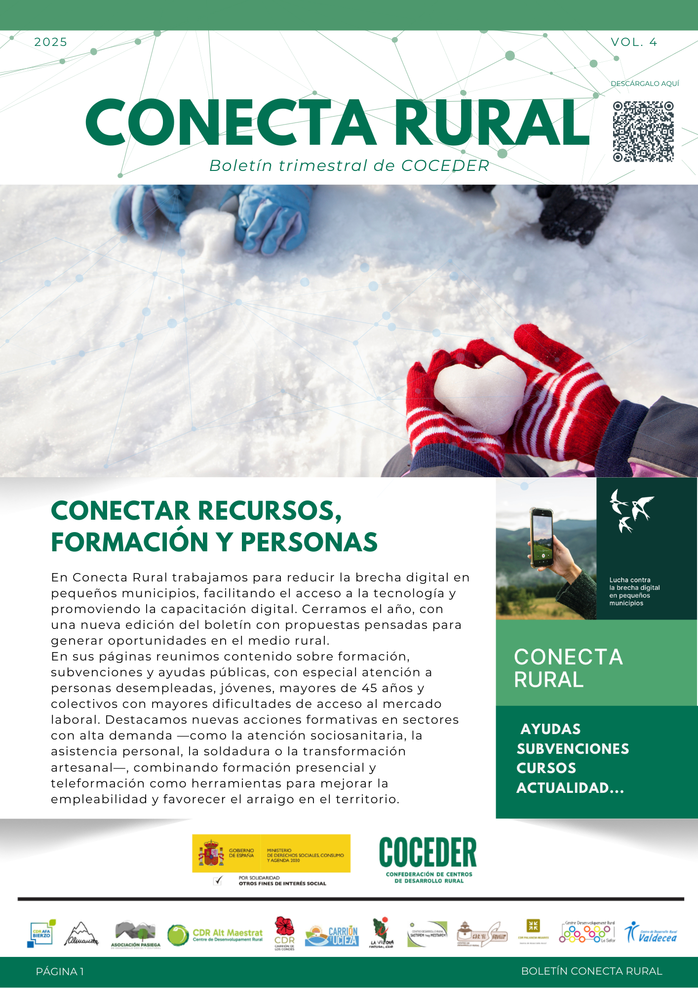 "Conecta rural, lucha contra la brecha digital en pequeños municipios", está subvencionado por el Ministerio de Derechos Sociales, Consumo y Agenda 2030, dentro de los programas de interés social, está coordinado por COCEDER y lo llevan a cabo los Centros de Desarrollo Rural asociados: AFA Bierzo, Carrión de los Condes, Carrión y Ucieza, Almanzor, El Sequillo, Valdecea, Alt Maestrat, Palancia Mijares, La Safor, Asociación Pasiega, Sastipem Thaj Mestapem y Asociación Cultural Grío.