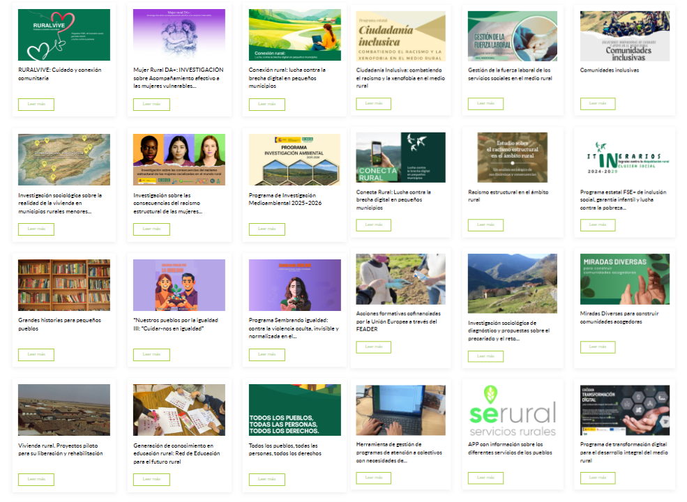 Si hablamos de programas enfocados principalmente a la lucha contra la despoblación destaca la plataforma volveralpueblo.coceder.org , la ventana visible de los proyectos impulsados para afrontar el reto demográfico en el medio rural.