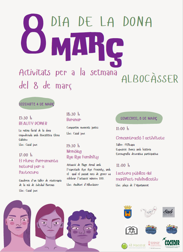 El CDR Palancia Mijares llevará a cabo varias actividades para el pueblo de Teresa, con dinámicas y merienda, bingo y película en el local de la Asociación de Mujeres. El CDR la Safor por su parte se adhiere a la huelga general y participará en las actividades de la Xarxa Feminista de la Safor, con una manifestación en Gandía.