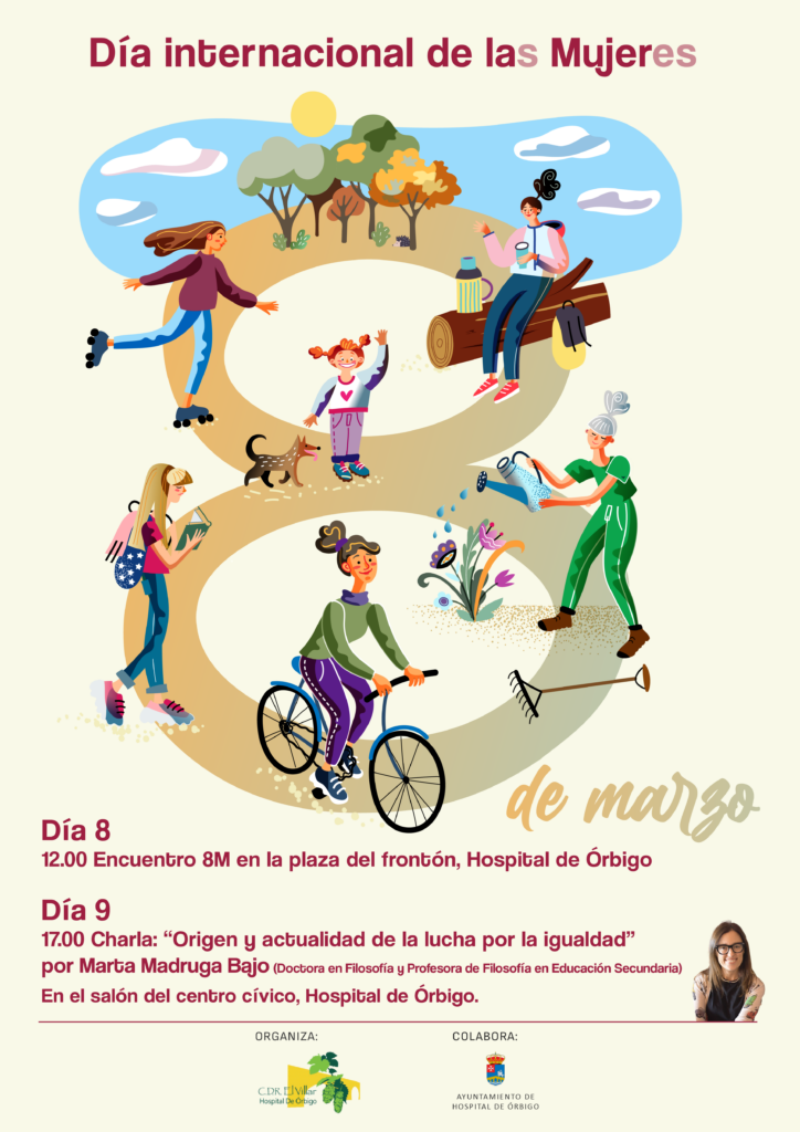 Algunos centros tienen actividades otros días como el CDR El Sequillo, que bajo el lema “Dale un like a la igualdad”, propone para el día 9 un encuentro comarcal con la concentración, un minuto de silencio en recuerdo de las mujeres privadas de sus derechos fundamentales, y posteriormente un café y un monólogo Patrisaki “Las mujeres lloran y facturan”, con la humorista Patri de la Fuente. Ese mismo día el CDR El Villar tendrá una charla sobre el tema «Origen y actualidad de la lucha por la Igualdad» impartida por una profesora de Filosofía de Educación Secundaria.